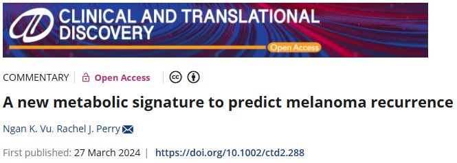 Congratulations to CeCe on her commentary on a translational paper revealing an AI-generated histopathology and spatial proteomics approach to generate a metabolic signature to predict melanoma recurrence in patients. It was published in Clinical and Translational Discovery today!